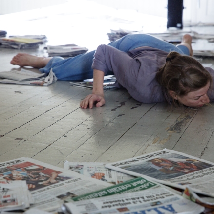 Newsflash performance dives into the stream of news and observes it as bodily experience, space and situation.